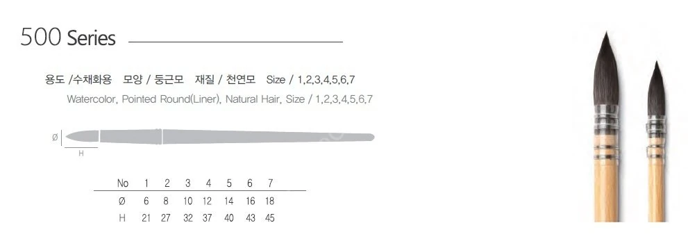 Hwahong 500 Profesyonel Kalite El Yapımı Sincap Suluboya Fırçası No:2